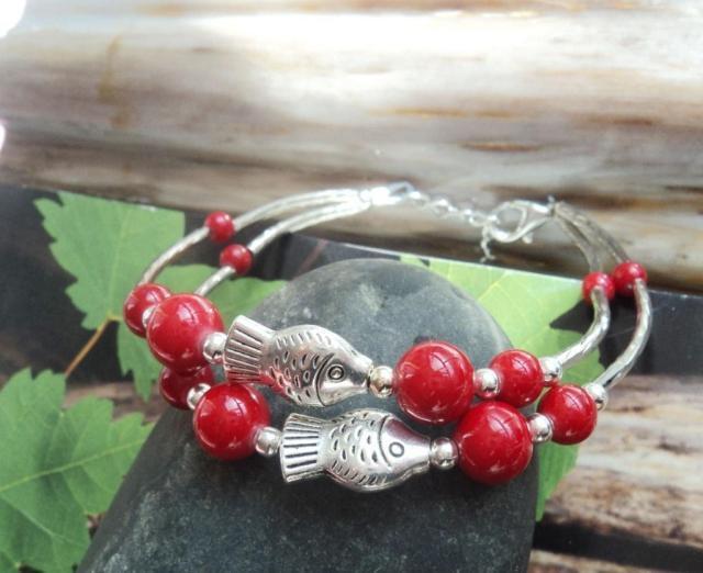 Women Lady Red Turquoise Stone Fish Wrist Bracelet Jewellery Gift for Mum her