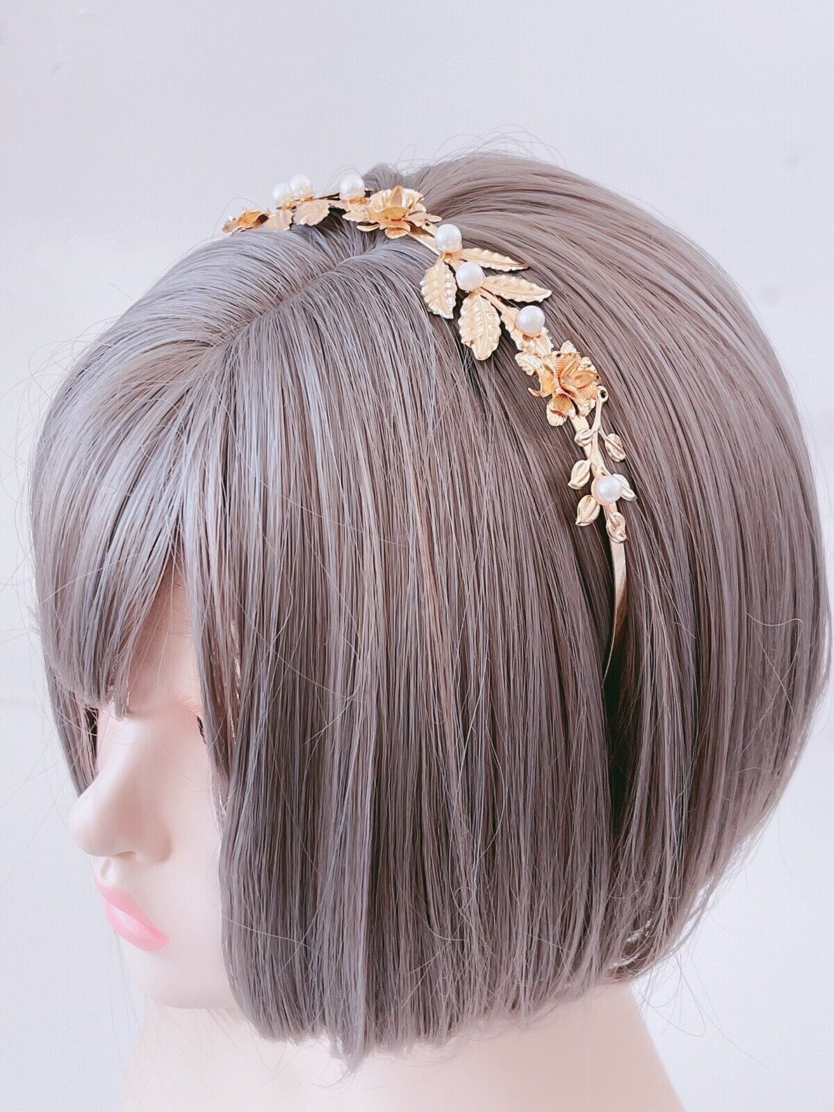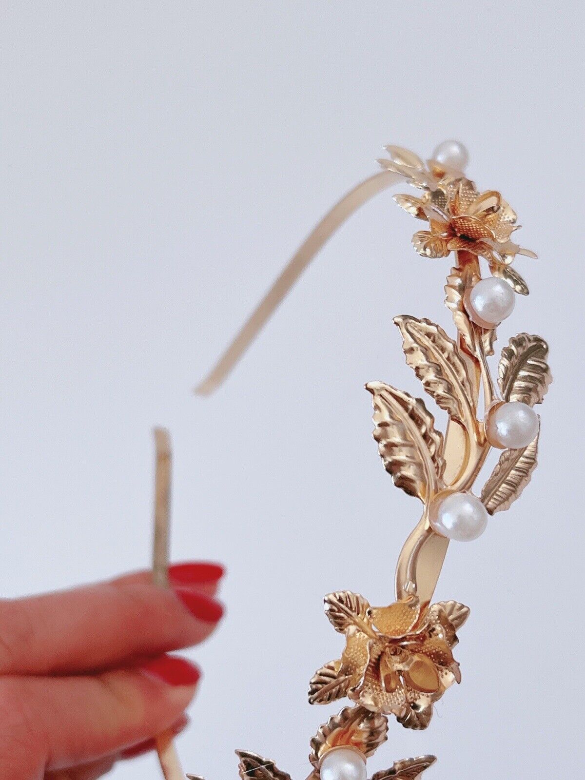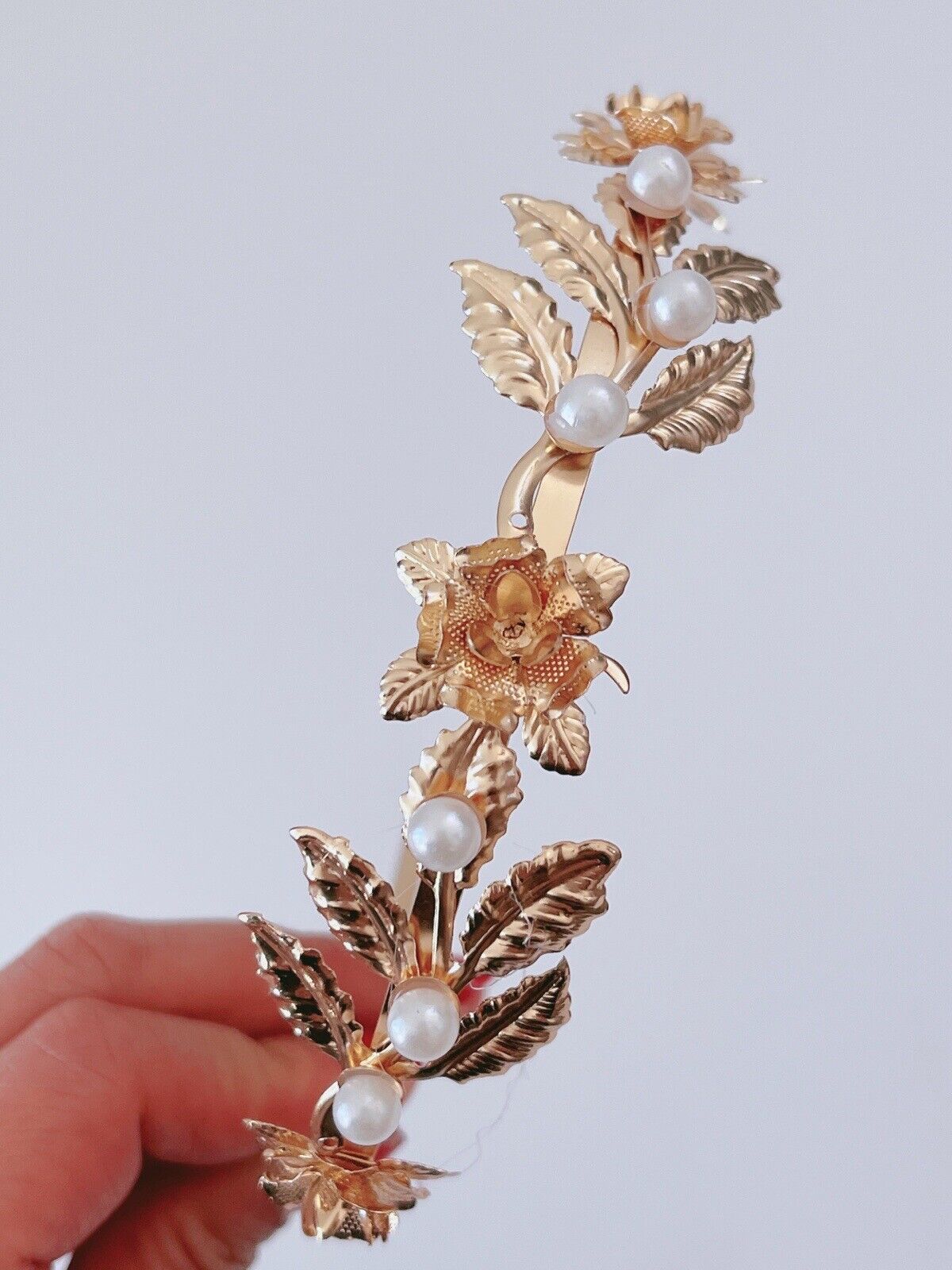 Women Girl Gold Rose Pearl Leaf Party Hair Head Band Headband Hoop headpiece
