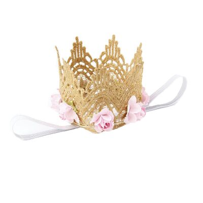 Girls Kids Children Baby Princess Party crochet lace Crown Tiara Hair Head Band Pink Flower Crown