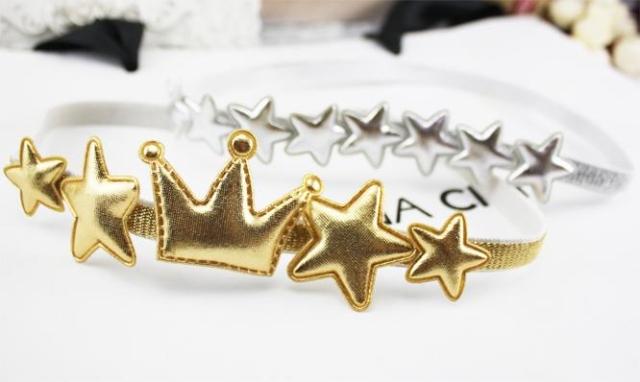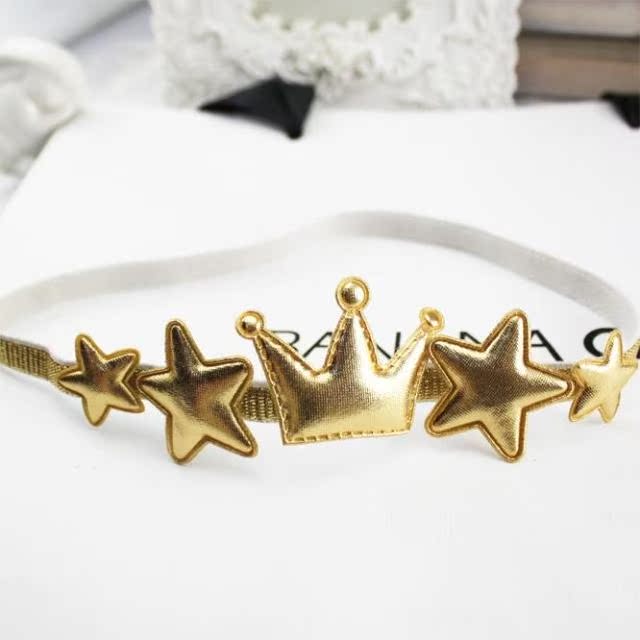 NEW Girl Baby Kids soft elastic band Tiara crown star Hair Headband Party Prop gold crown star
