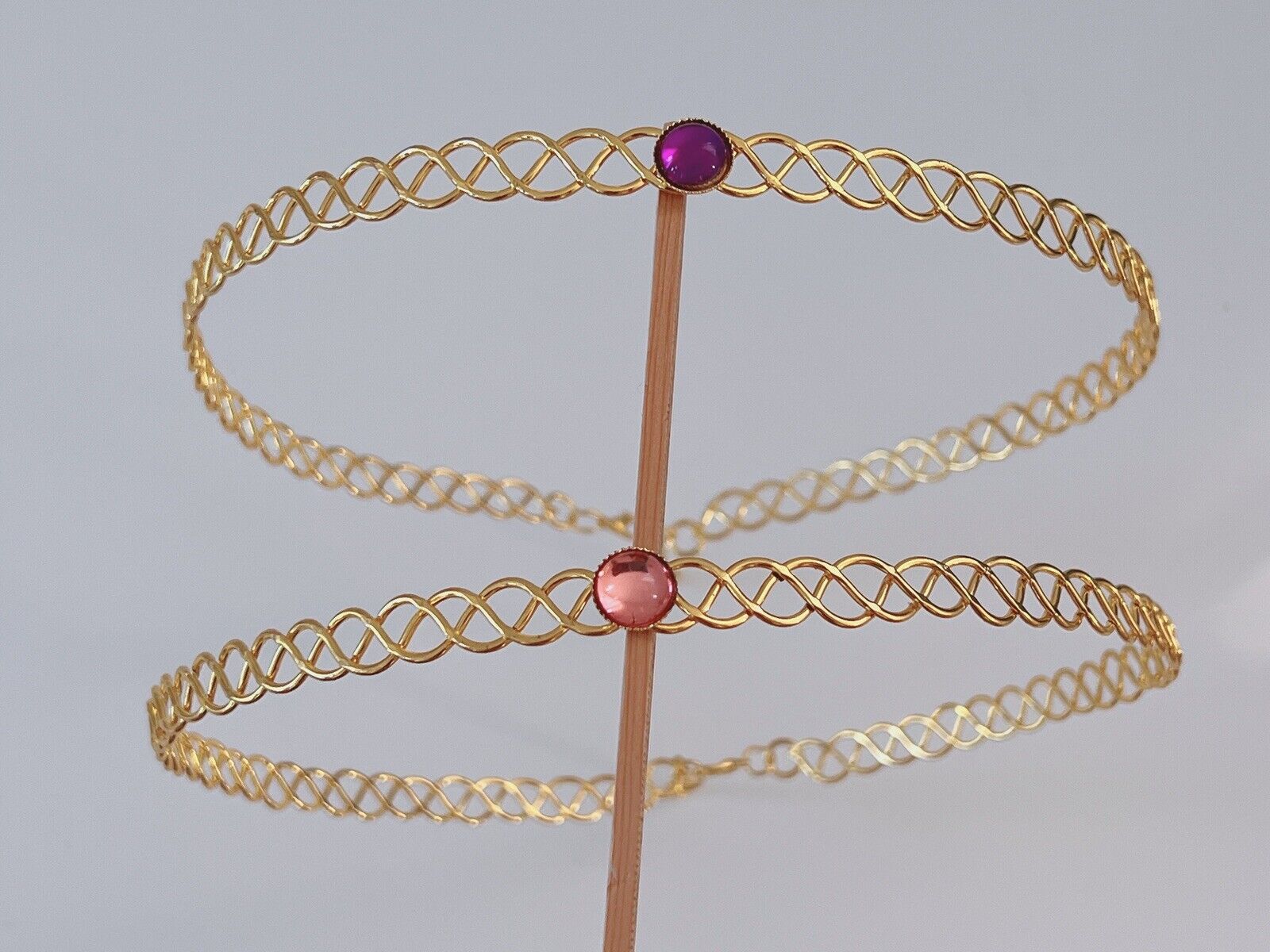 Women Celtic Simple Queen Gold color Gem Crown Tiara Hair Head Band Circlet