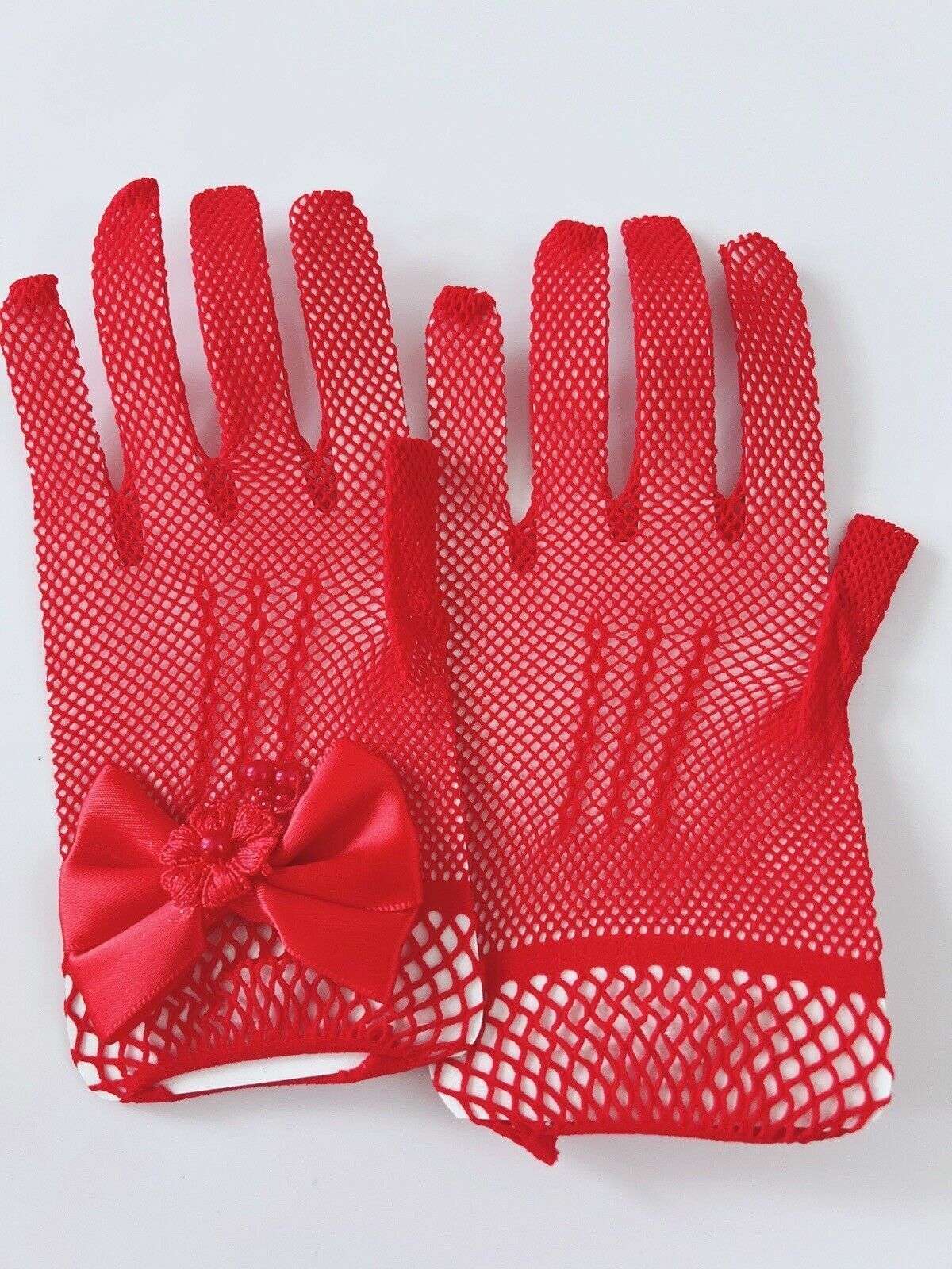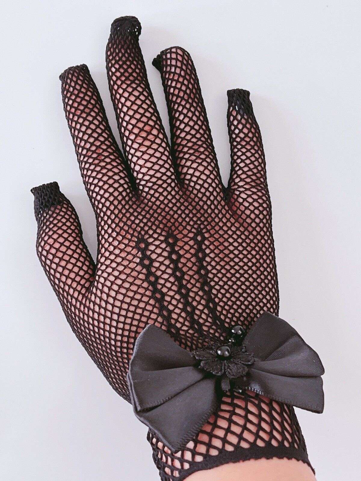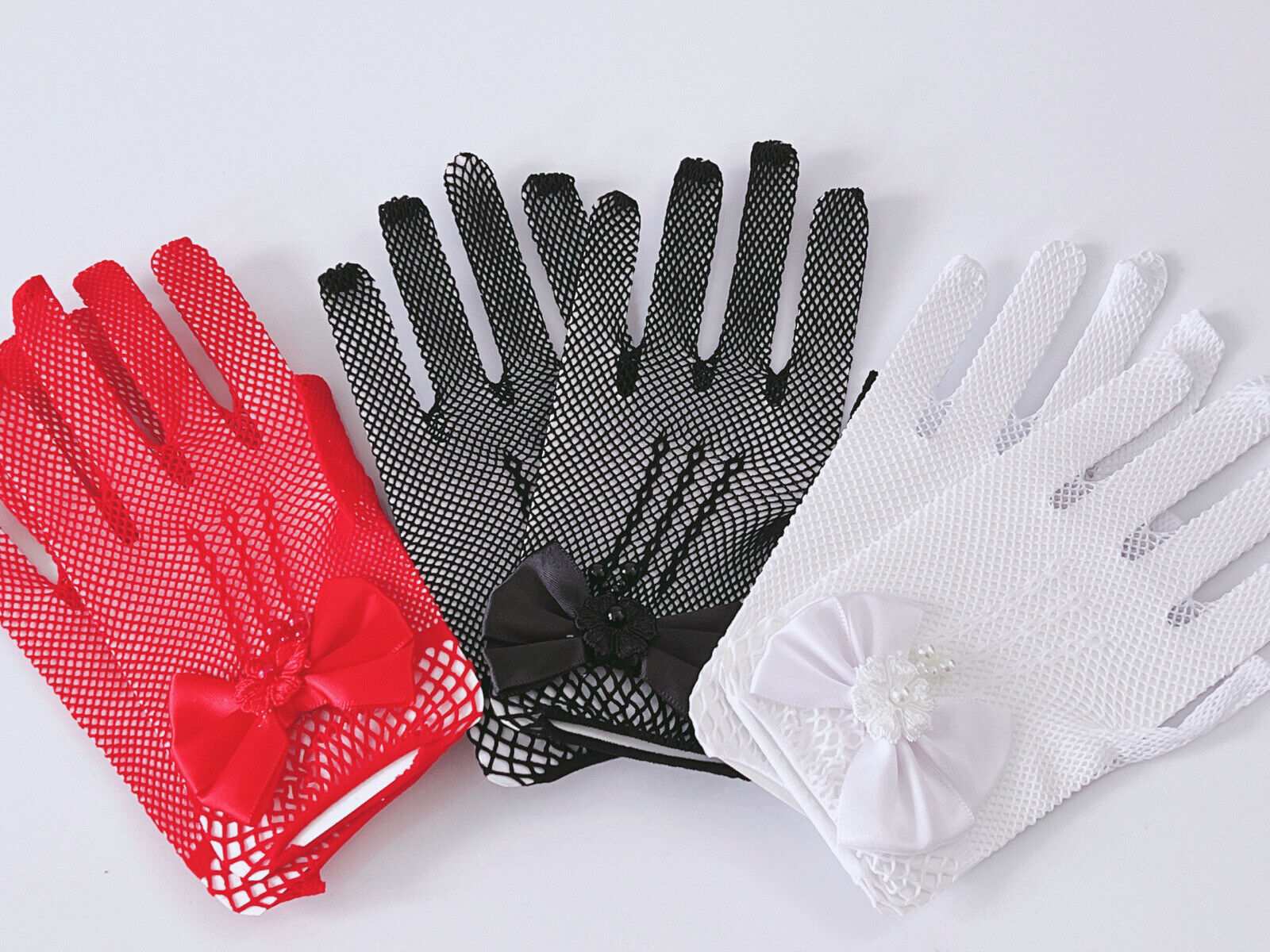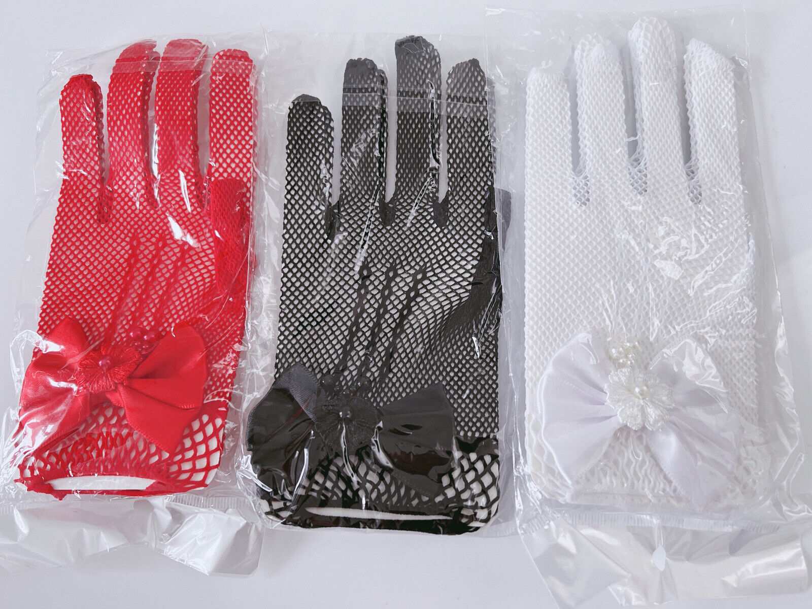 Women Ball Party Fancy Function Wedding Net Bow Short Black Red White Gloves