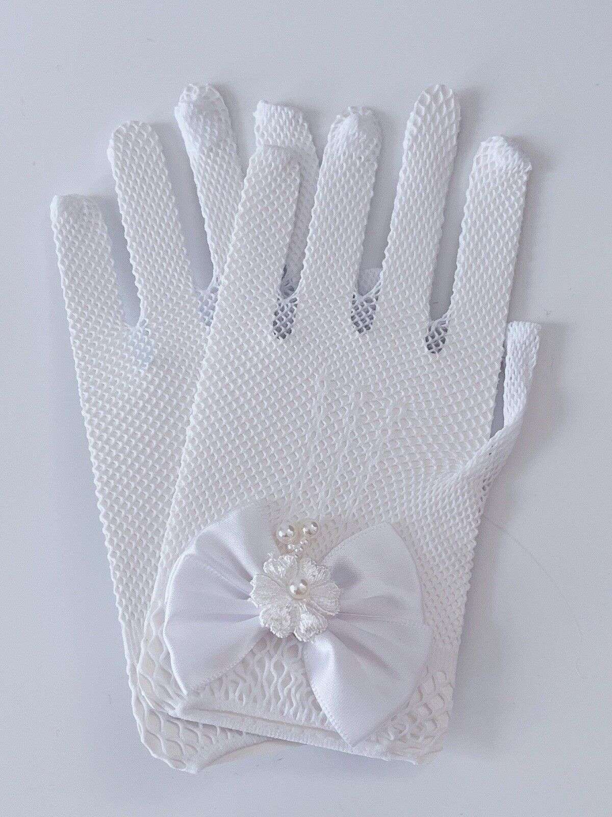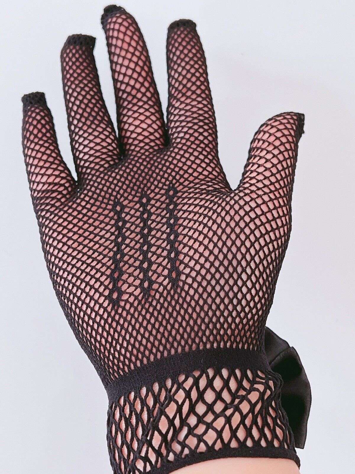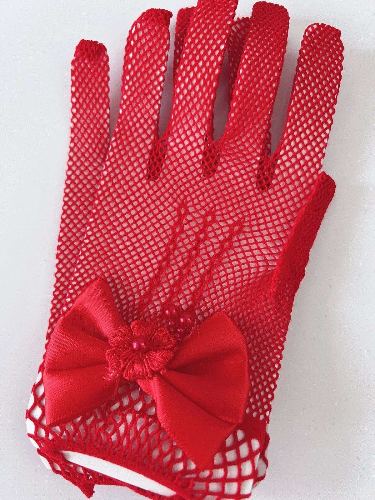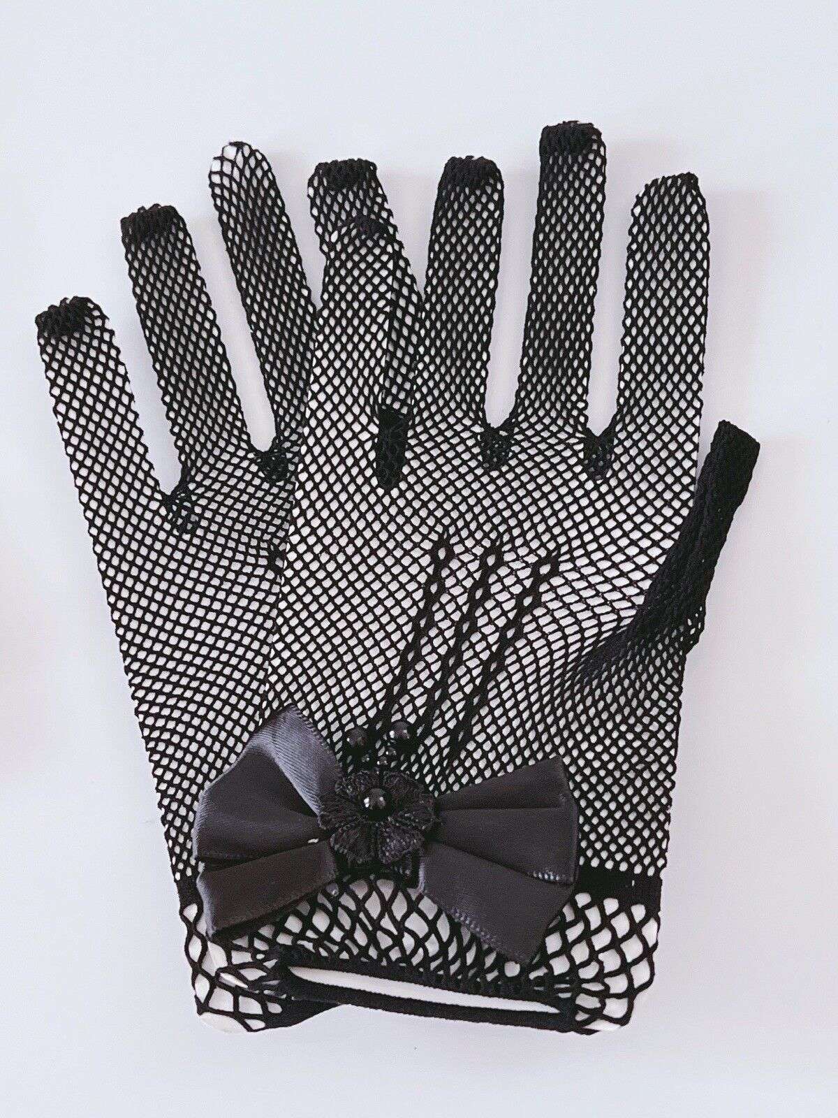 Women Ball Party Fancy Function Wedding Net Bow Short Black Red White Gloves