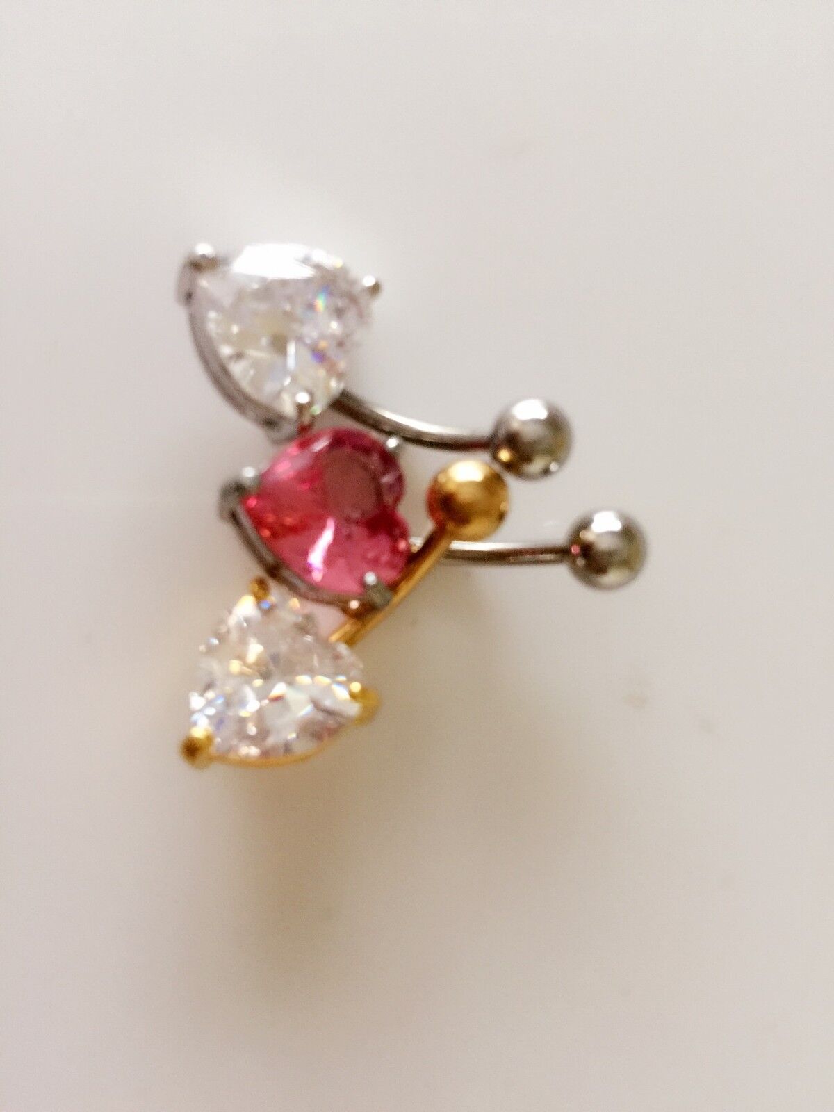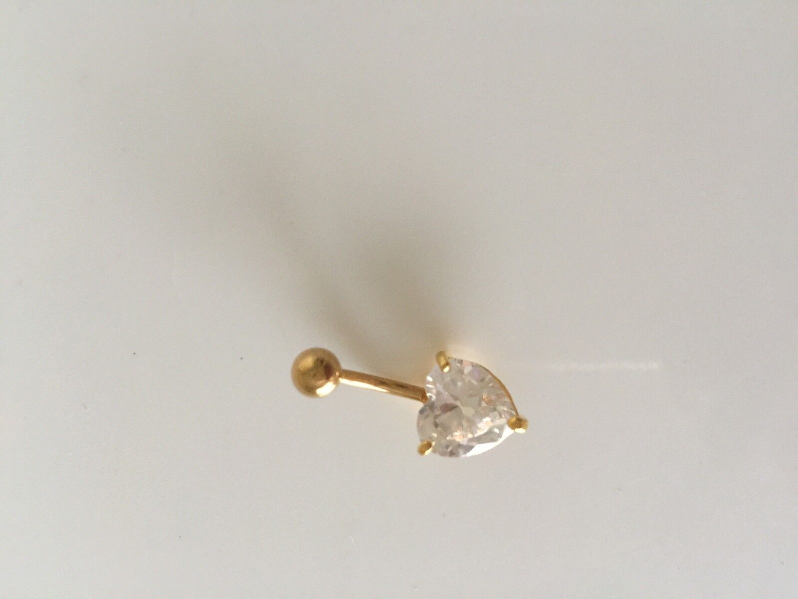 1x Heart 316L Surgical Stainless Steel Belly Navel Bar Body Piercing Jewellery White zircon with gold plated base