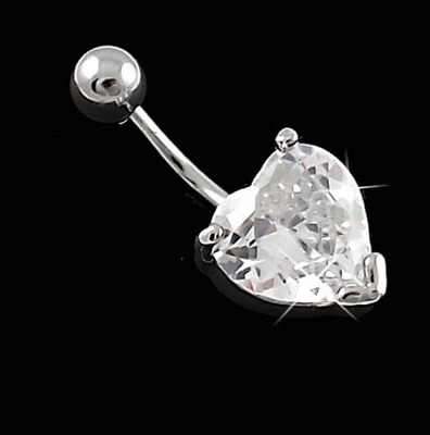 1x Heart 316L Surgical Stainless Steel Belly Navel Bar Body Piercing Jewellery White zircon