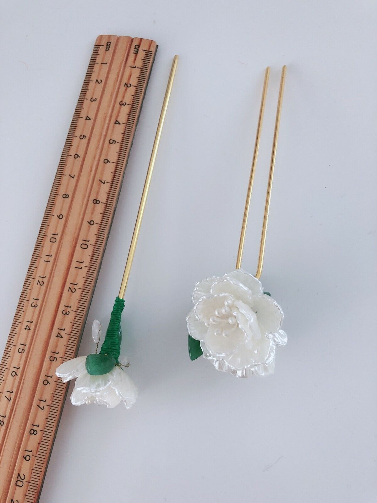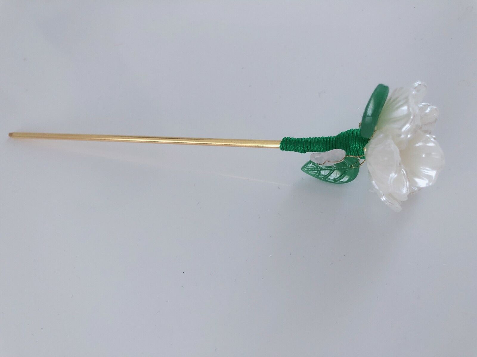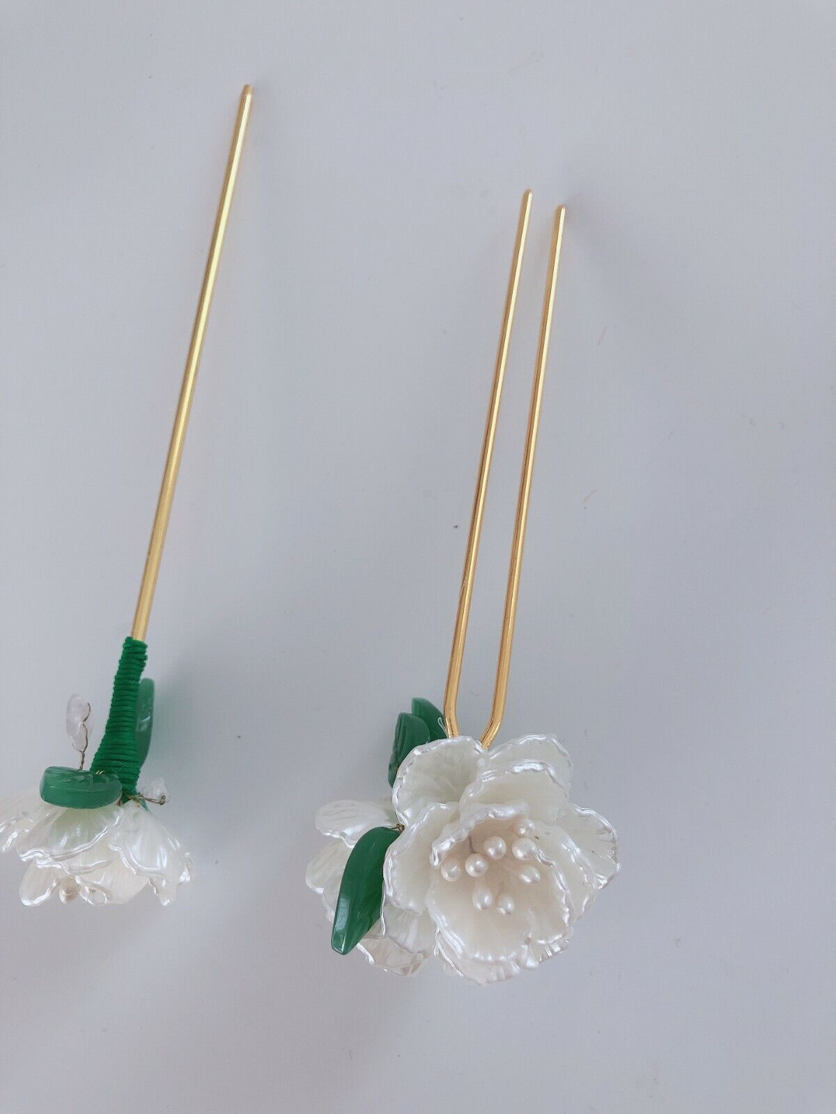 1x Women Creamy White Camellia Leaf Flower Styling boho hair chopstick U Bobby Pin