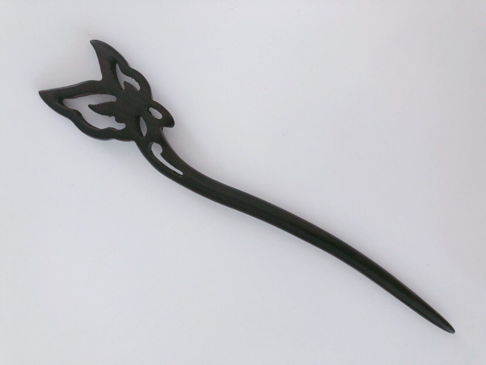 1x Women ebony wooden Oriental Updo Bun Styling boho hair Pin Stick Chopstick Butterfly