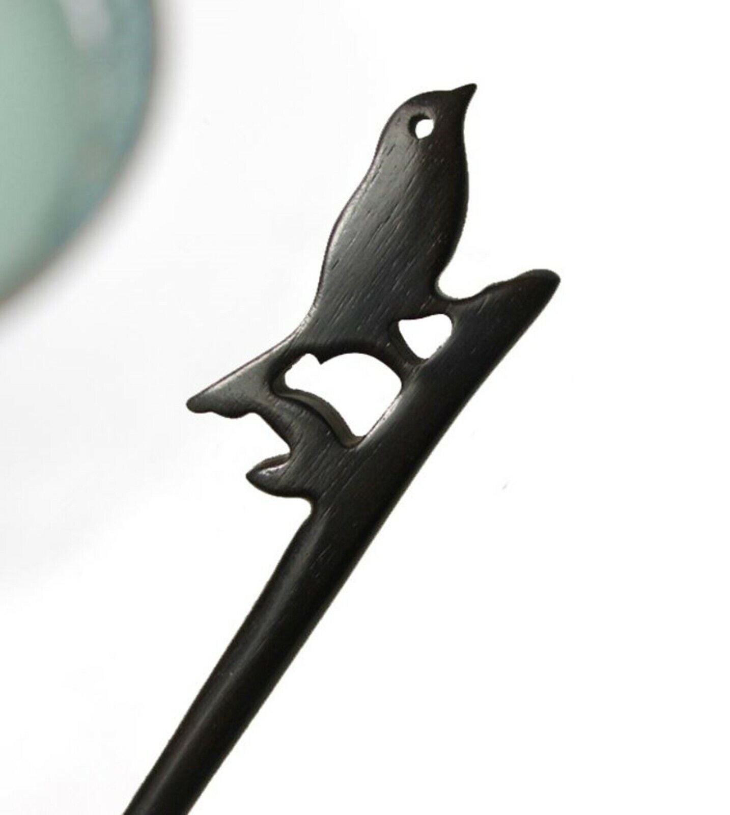 1x Women ebony wooden Oriental Updo Bun Styling boho hair Pin Stick Chopstick Bird