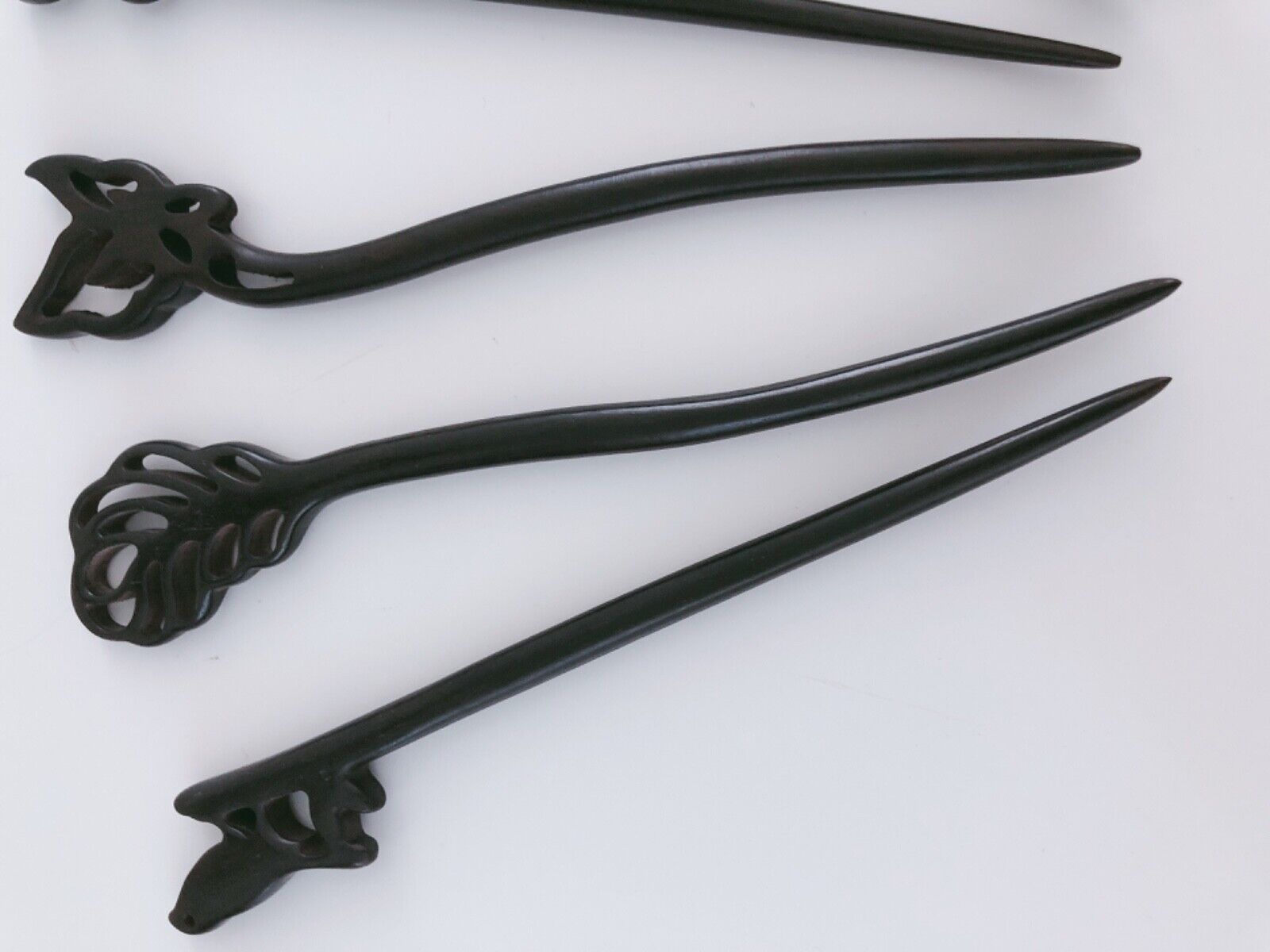 1x Women ebony wooden Oriental qipao Chinese Japan Styling boho French hair U Bobby Pin Stick F296T