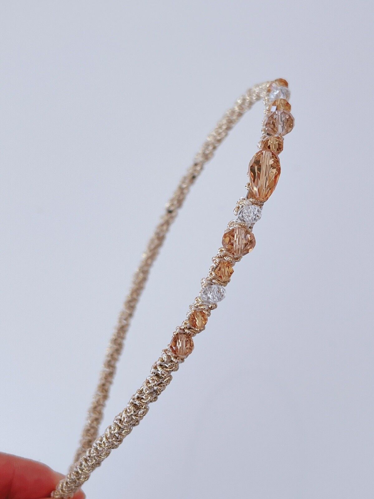 1x Women Girl Lady Colorful Crystal Beads Rhinestone Look Headband Hair Band Champain