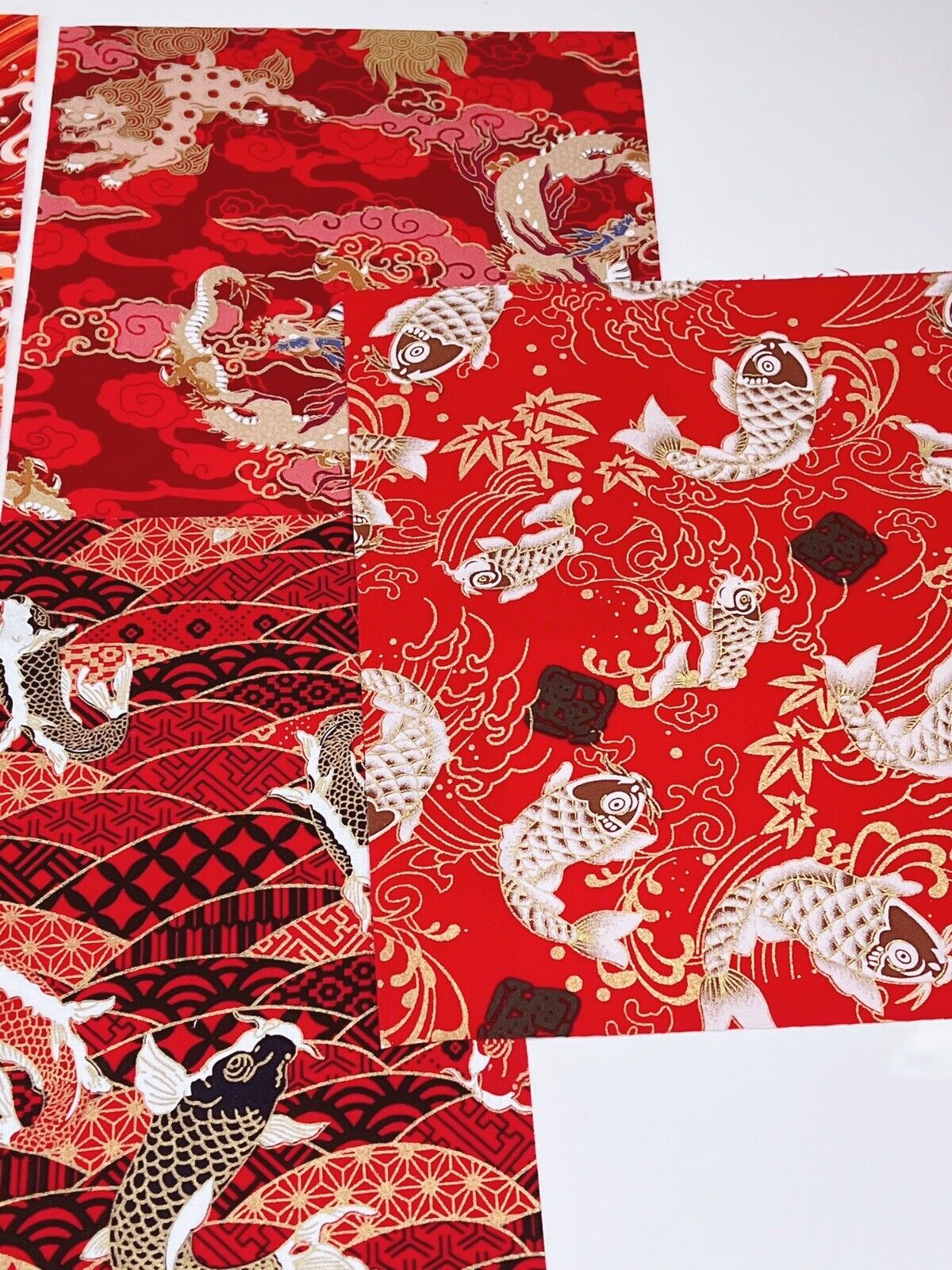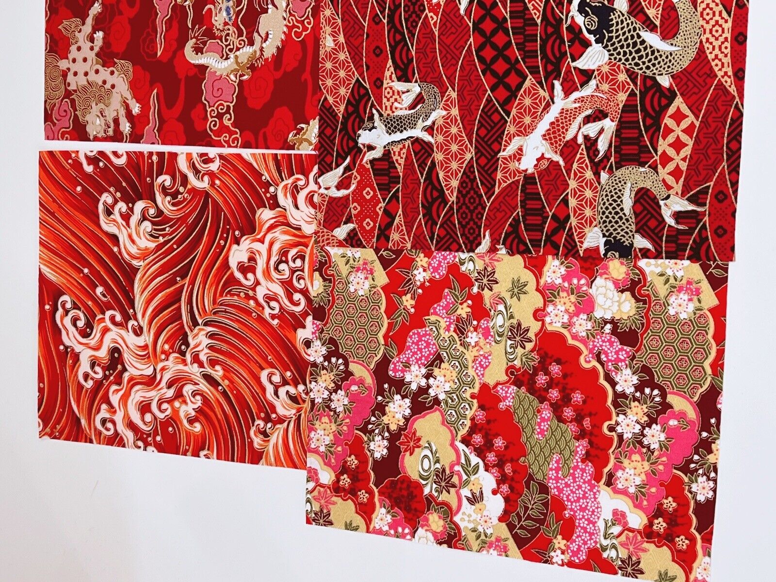 5x Craft Japanese Pattern Fabric Cloth Pieces Sewing Patchwork Wrap Material 5x Red Set