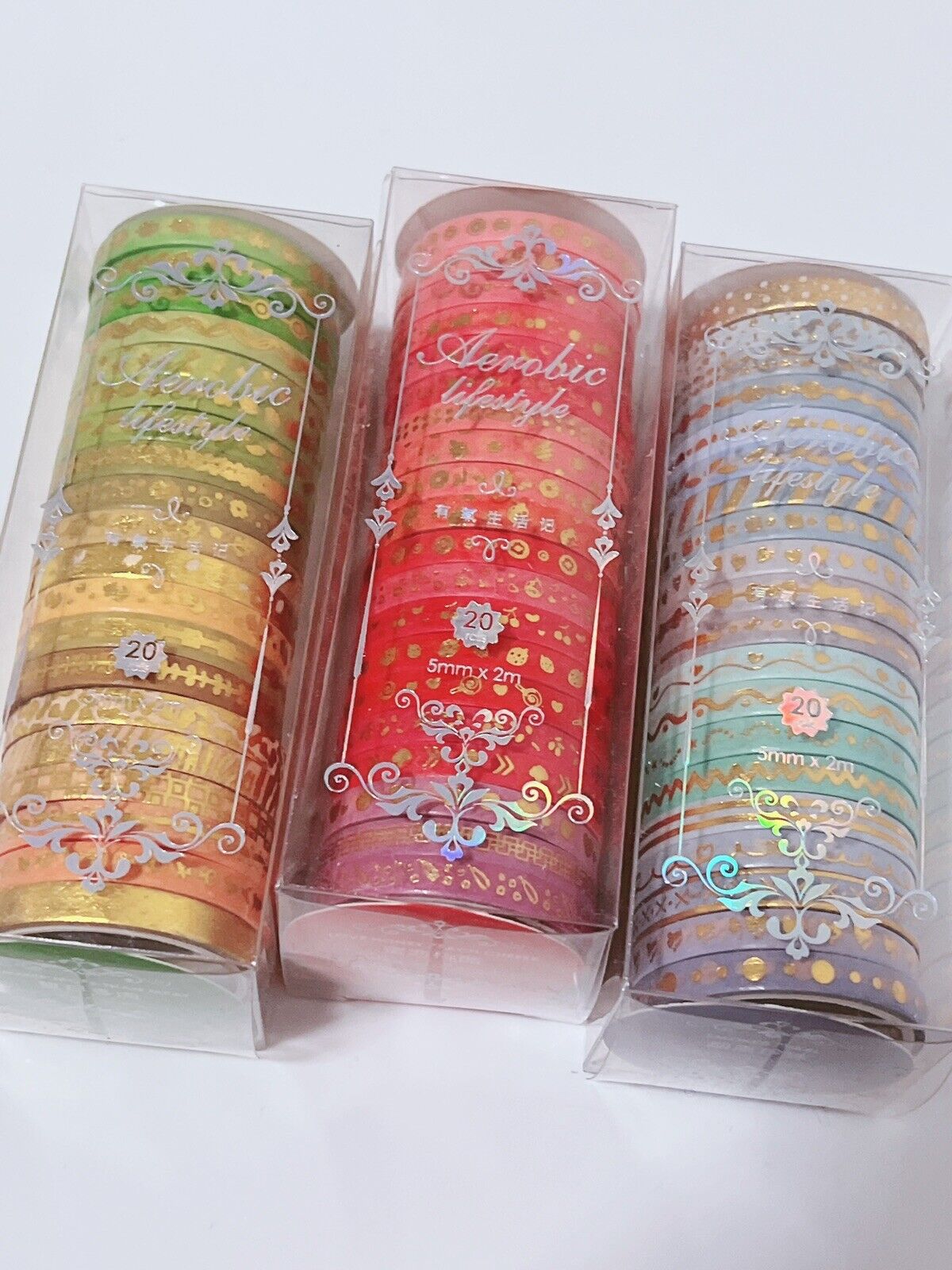 AU 20 Rolls Sticky Washi Tape Papers Gilding Scrapbooking Journal Note Stickers Do Not Flatten Box Postage