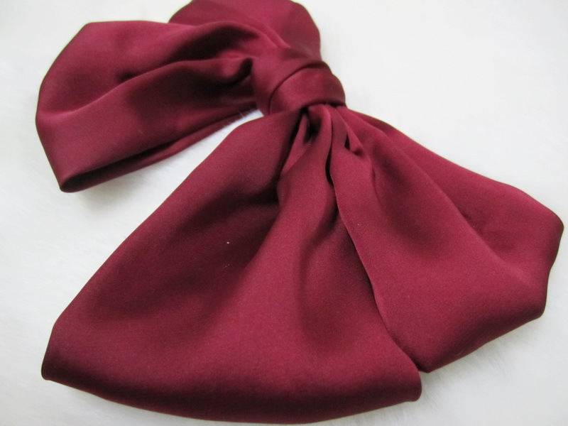 Women Lady Satin Silky feel Ribbon Grace School big Bow Hair Head Clip D0367